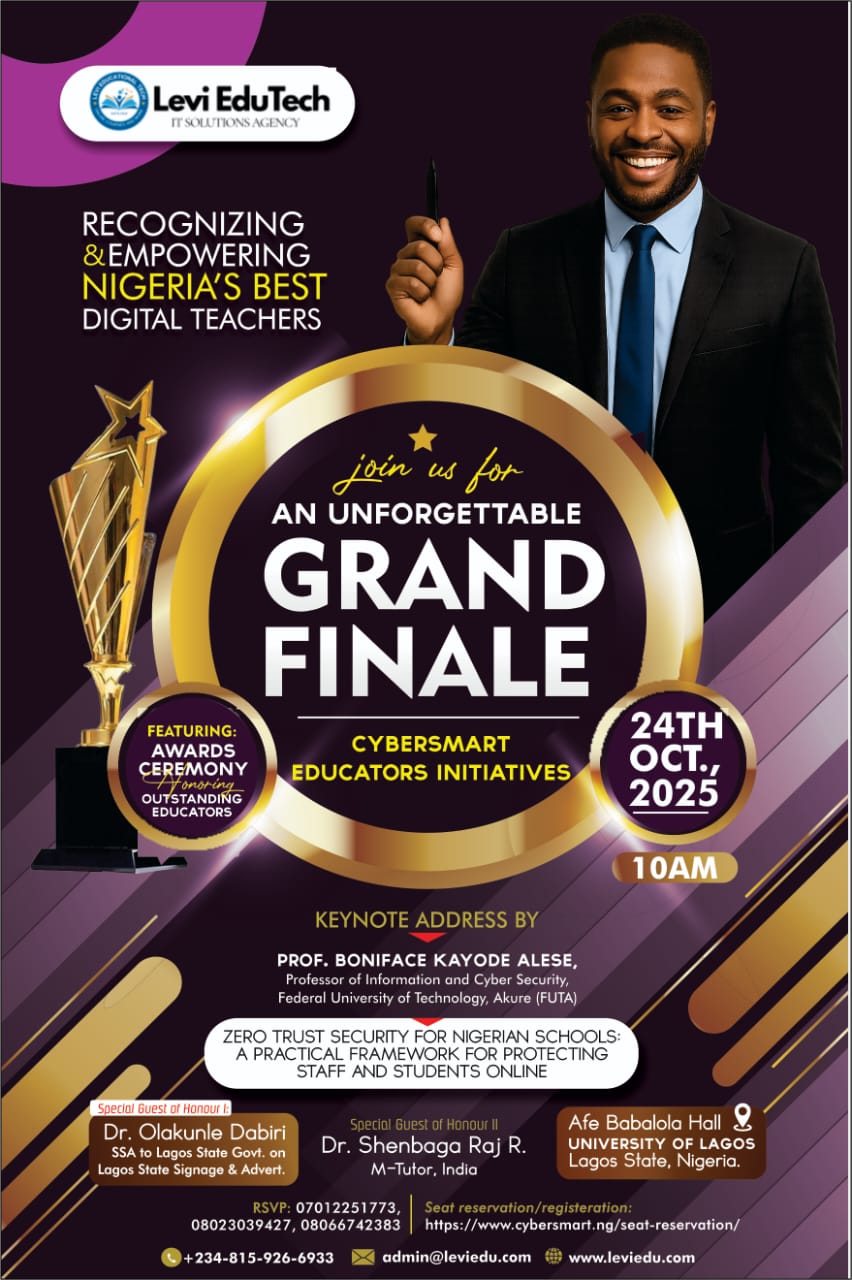 The CyberSmart Educators Initiative is a a global movement dedicated to transforming the educational technology and technology education landscape. Powered by Levi Educational Technology and Design Consulting Ltd (Levi EduTech), CEI equips primary and secondary school teachers with vital skills in Educational Technology, Artificial Intelligence (AI) and Cybersecurity, while recognizing and celebrating outstanding digital educators and schools.